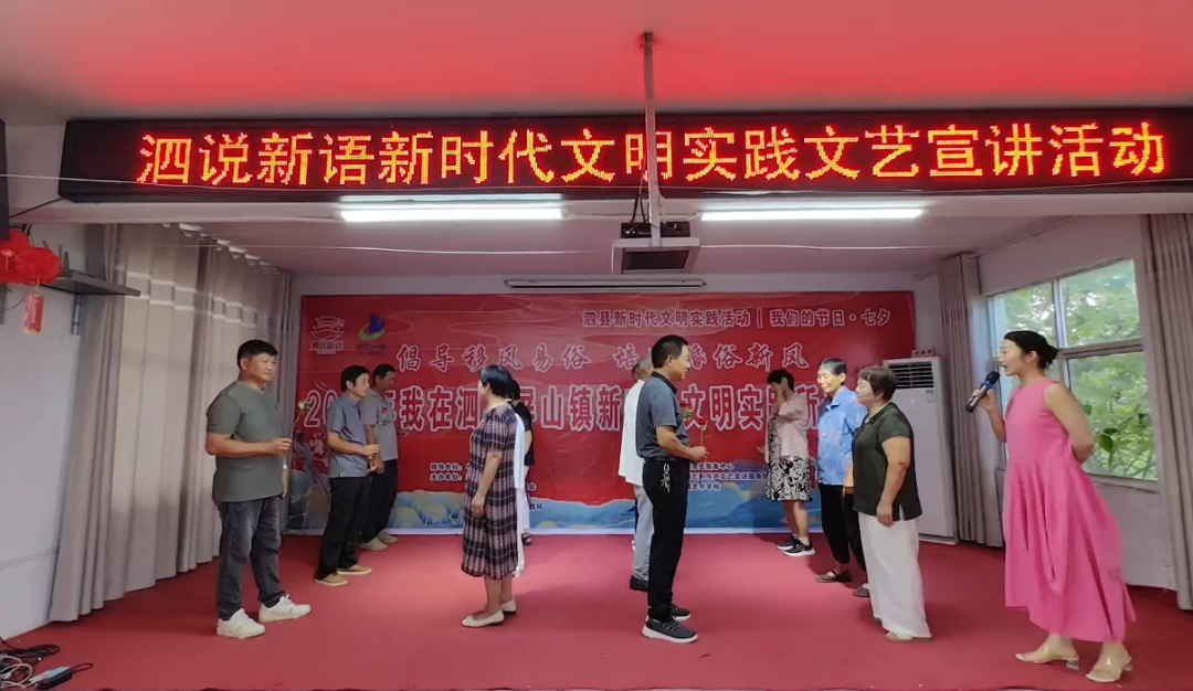 8月29日,在传统节日“七夕”当天,屏山镇新时代文明实践所举办“2025年我在泗县屏山镇新时代文明实践所过七夕”主题活动,邀请来自各村的金婚、银婚夫妻代表共同参与。活动中,老人们观看了精彩纷呈的文艺演出,分享了各自相伴多年、相濡以沫的爱情故事,深情讲述了婚姻中的理解、包容与坚守,感人至深、催人泪下。现场还设置了拍照留念环节,为老人们定格幸福瞬间,留下美好回忆。通过此次活动,不仅弘扬了中华优秀传统文化,也生动展现了新时代文明风尚,进一步营造了全社会尊老、爱老、敬老的良好氛围,增强了群众的幸福感和获得感。