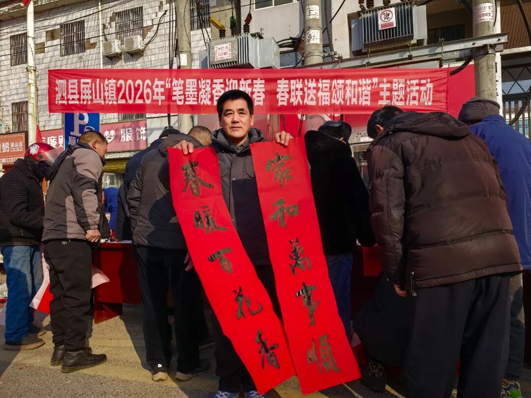 2月11日,泗县屏山镇新时代文明实践所联合镇便民服务中心,共同开展“笔墨凝香迎新春 春联送福颂和谐”主题活动,将党和政府的关怀与温暖传递至群众心间,营造喜庆祥和的节日氛围。