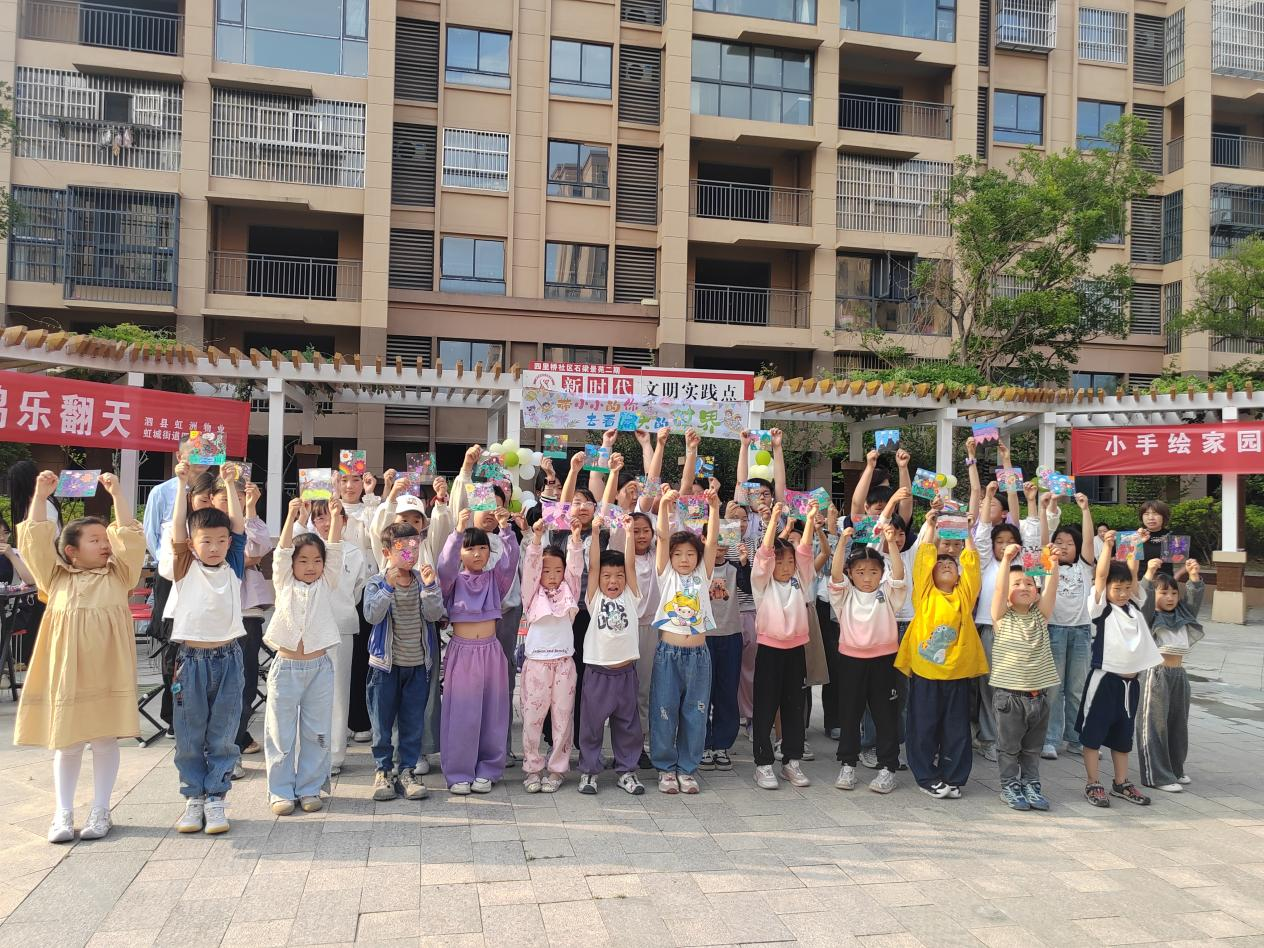 针对儿童群体,虹城街道还打造了“虹小帽”文明实践项目。它巧妙地将视角转向社区小主人,通过“小手绘家园”“小小楼栋长”等一系列富有童趣和创造性的活动,引导青少年以“主人翁”姿态参与社区美化、文明倡导和基层治理实践。孩子们亲手绘制文明标语、参与社区巡查,不仅在实践中培育了家国情怀与责任意识,更以纯真童心为社区注入了蓬勃朝气,探索出基层治理的“柔性引擎”。