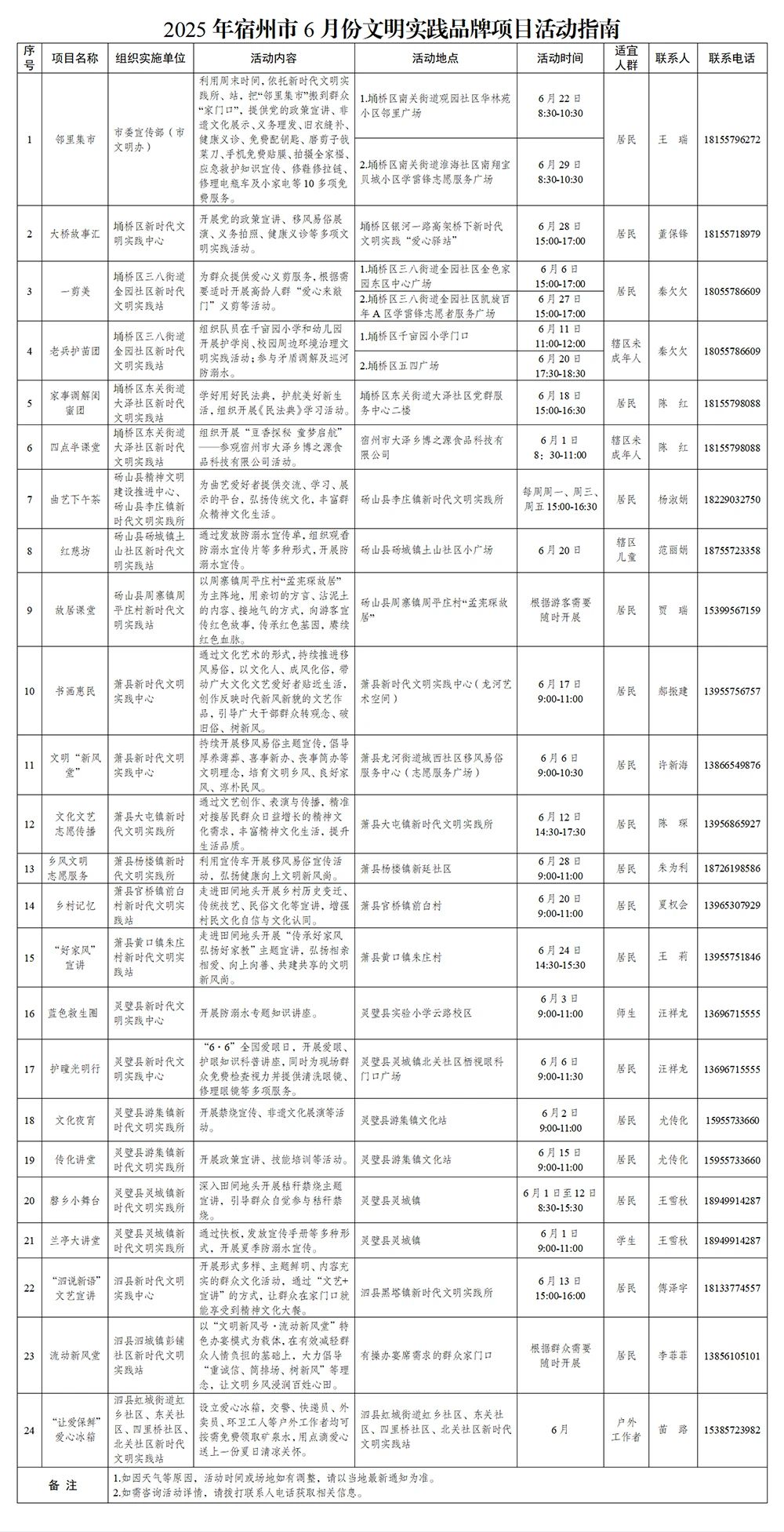 2025年宿州市6月份文明实践品牌项目活动指南来啦!