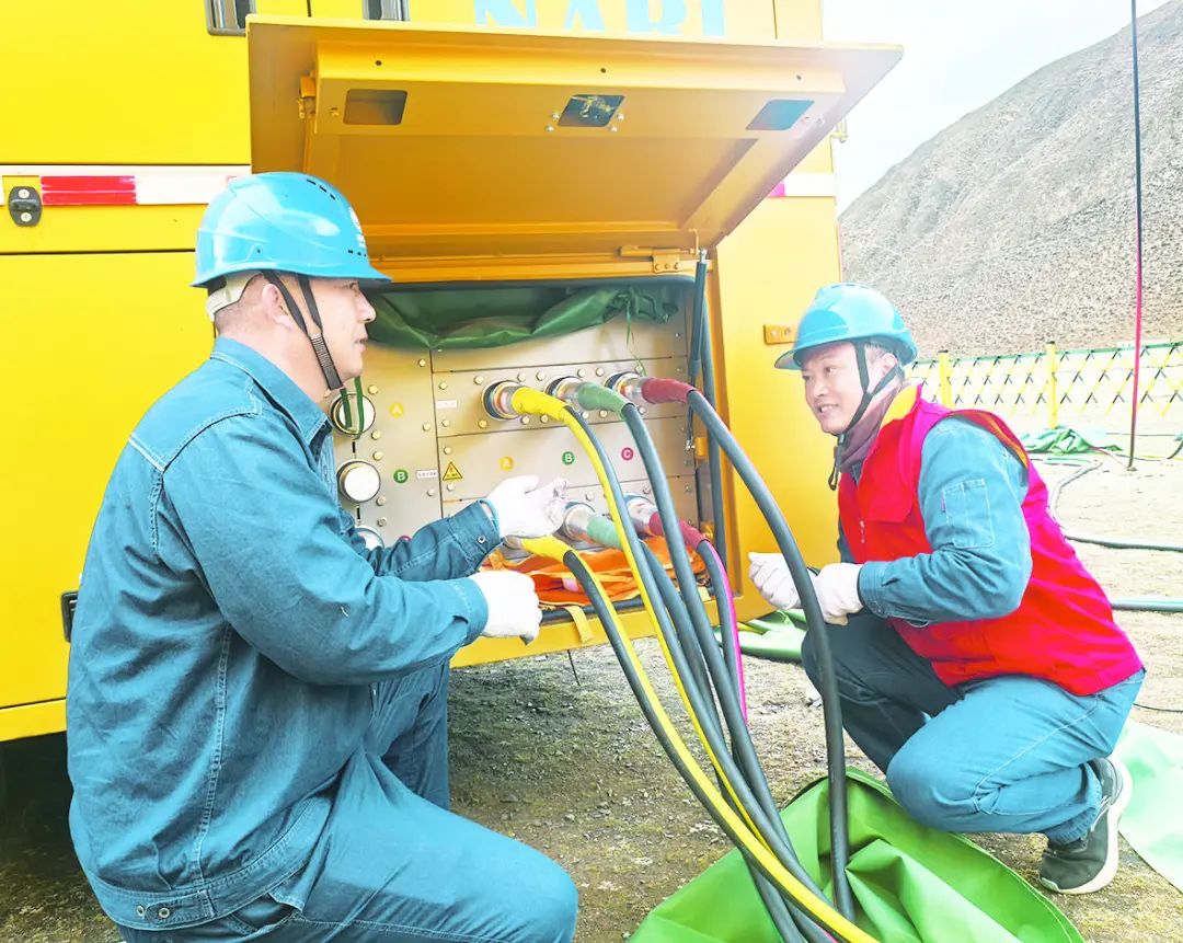 “称多县10千伏称三路和称四路是全县负荷最大的两条线路,关系到3000多户居民的用电安全。”视频连线中,陈石科的声音因高原反应略显沙哑。镜头里,他正在指导当地电力工人操作发电车,身后是呼啸的风沙和简易的帐篷。