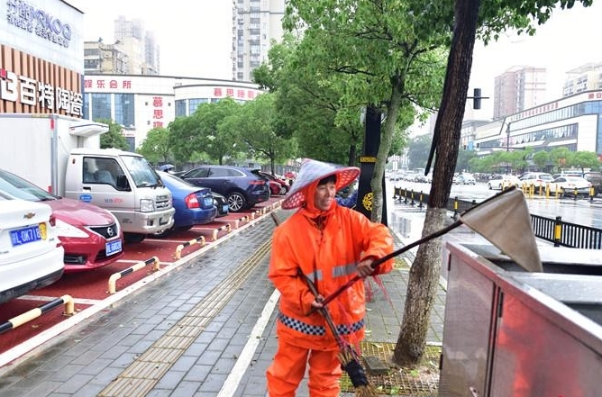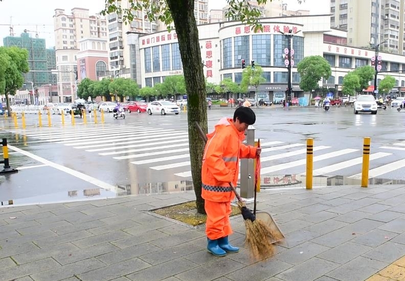 雷禾花在街头进行清洁工作。图片来源:鹰潭日报
