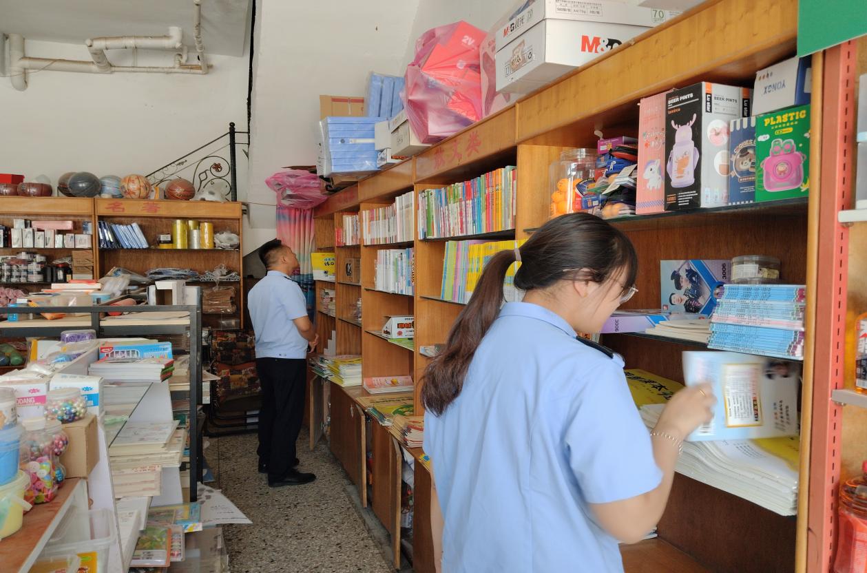 检查组以教材教辅、课外读物、文具玩具等为重点检查对象,逐一核查经营单位证照资质、进货渠道及销售内容,严查是否存在非法出版物、侵权盗版书籍、涉低俗内容的儿童绘本、卡通画册等有害文化产品。 与此同时,向经营单位宣传“扫黄打非”、《出版物市场管理规定》等相关法规知识,引导其守法诚信经营。