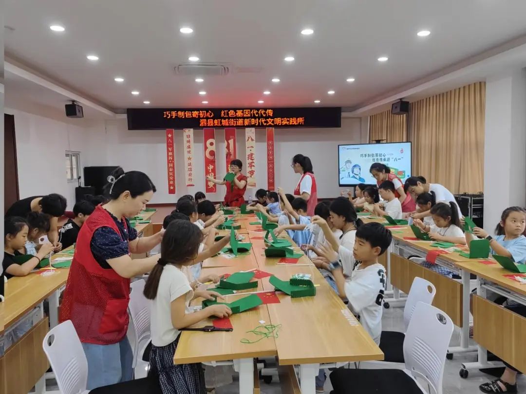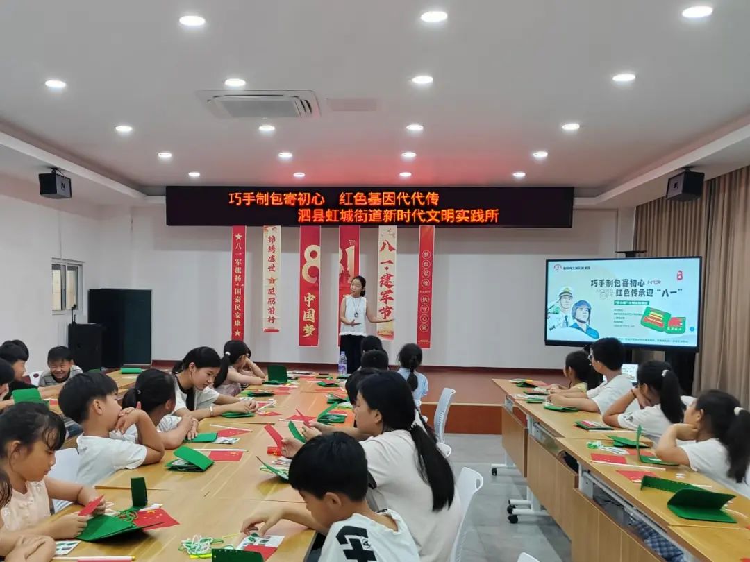 7月31日,泗县虹城街道新时代文明实践所联合四里桥社区新时代文明实践站、虹洲物业公司,开展“巧手制包寄初心 红色基因代代传”活动,通过寓教于乐的方式,让孩子们在动手实践中感悟革命精神,厚植家国情怀。